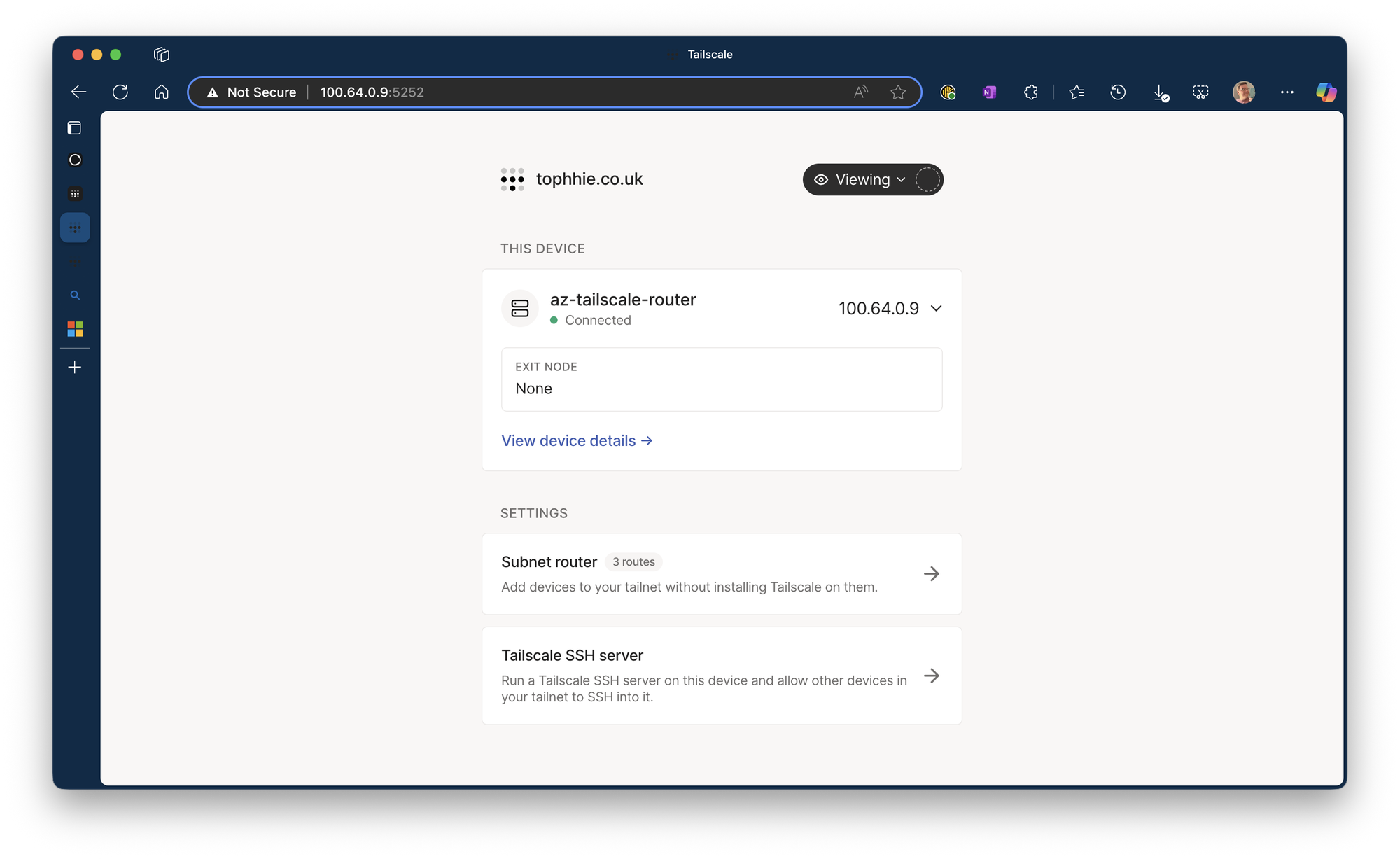 Now I've managed to deploy a Tailscale Subnet Router via Azure Container Instances, I can always access my private Azure Resources via my Tailnet whenever I need to, just by connecting to my Tailnet on any of my devices.