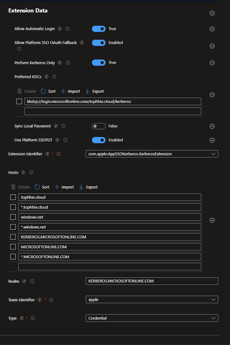 - Extension Identifier - com.apple.AppSSOKerberos.KerberosExtension