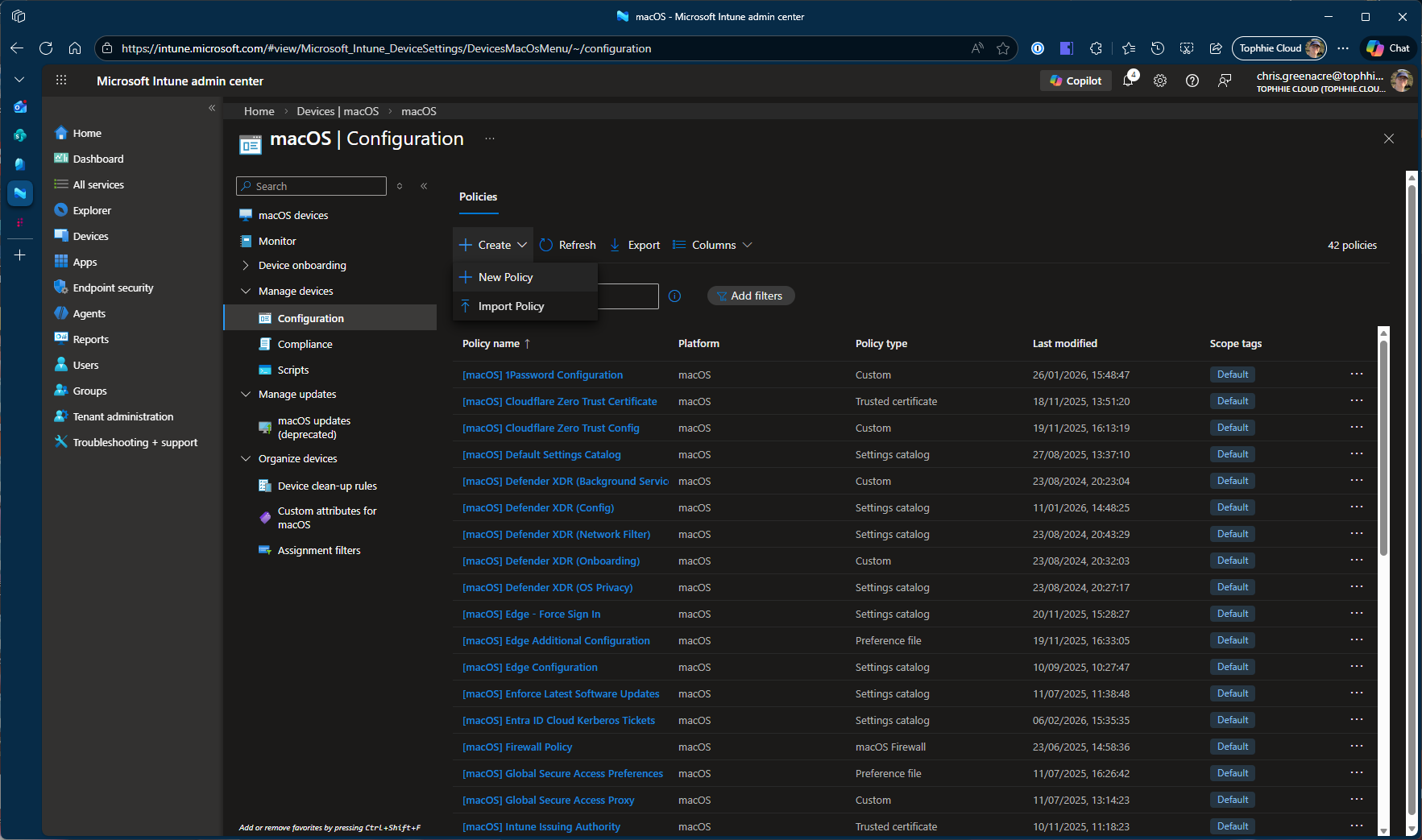 - You're going to start by heading to the Microsoft Intune Admin Center. And heading to the Devices > macOS > Configuration section.