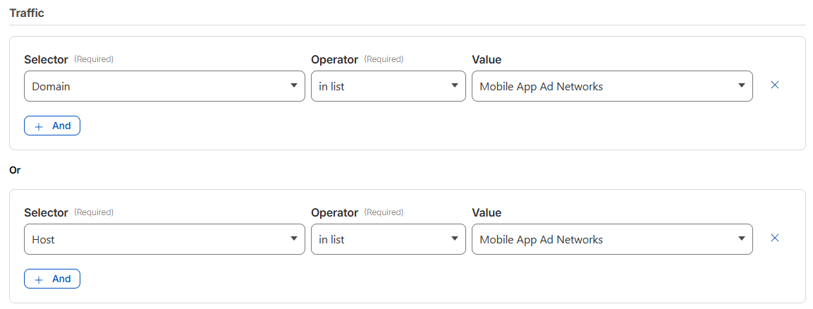 Very similar to the previous rule, except this one targets adverts most commonly served on mobile apps. Yet again, we need another list. I've called this one "Mobile App Ad Networks".