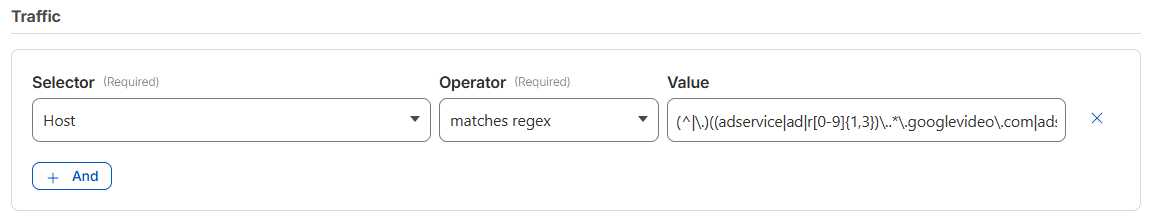 Host matches regex (^|\.)((adservice|ad|r[0-9]{1,3})\..*\.googlevideo\.com|adservice\.google\.com)(\.)